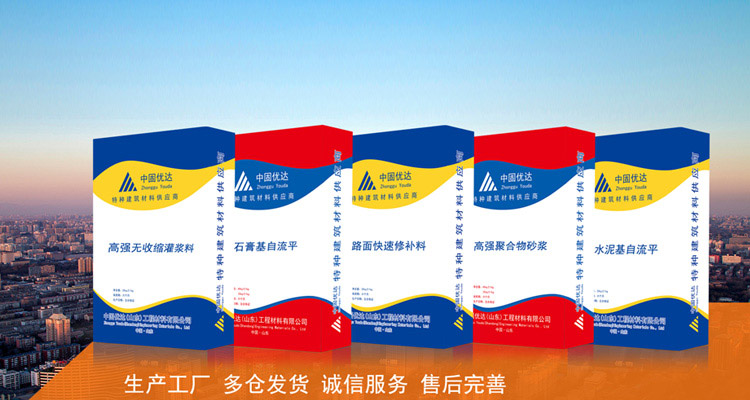 中固优达工程材料公司是一家集高强无收缩灌浆料、石膏基自流平、路面快速修补料、套筒灌浆料、风电灌浆料、聚合物砂浆、预应力孔道压浆料、座浆料、支座灌浆料、轻质抹灰石膏、高延性混凝土等生产销售于一体的现代化砂浆生产企业。