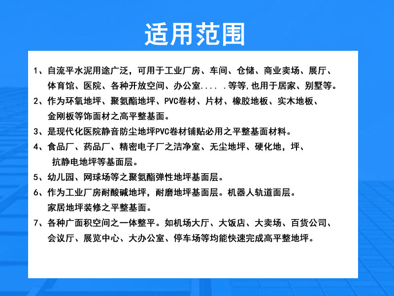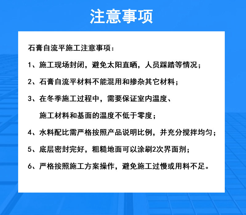 2.石膏自流平材料不能混用和掺杂其它材料;