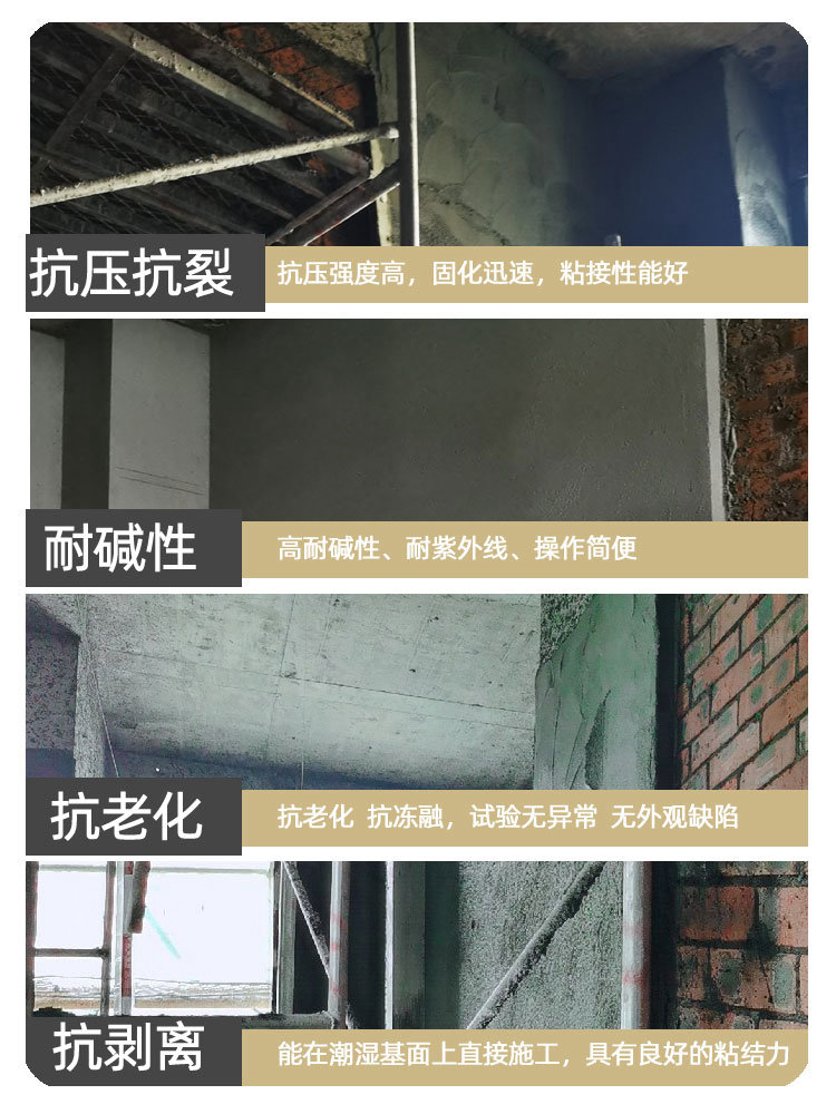 7、能在潮湿基面上直接施工,与多种基材具有良好的粘结力。