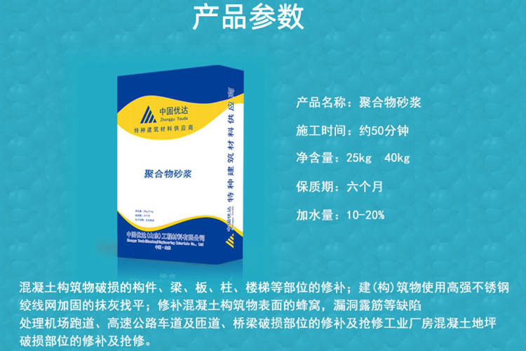 7、推荐加水量10-20%(重量比)的配合比搅拌高强修补砂浆。 采用机械搅拌2-3分钟即可,人工搅拌应在5分钟以保证搅拌均匀.